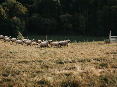 Znalost přírody místních podmínek a zarůstající bořkovské údolí mě přivedla k myšlence extenzivního chovu zvířat. Svažitý a dřevinami zarostlý pozemek jsem využil k chovu dvou koz hnědých krátkosrstých. Právě kozy byly prvními zvířaty, která naši farmu zakládala a která jsme obdrželi jako milý svatební dar. Naši domácí kuchyni jsme tak obohatili o čerstvé mléko a sýr. Na dalších teplých jižních stráních jsem potom původně umístil kamerunské ovce.